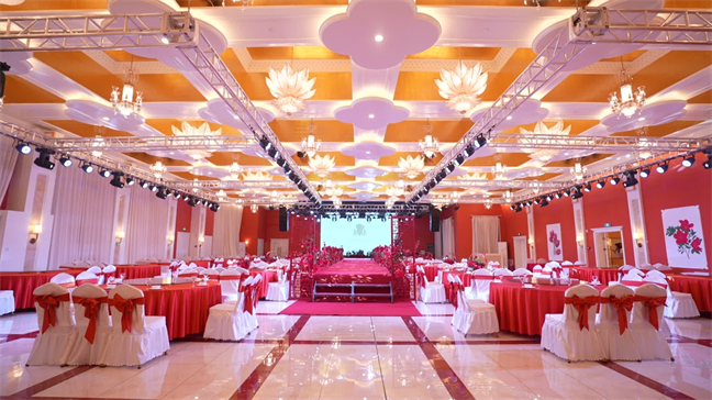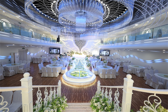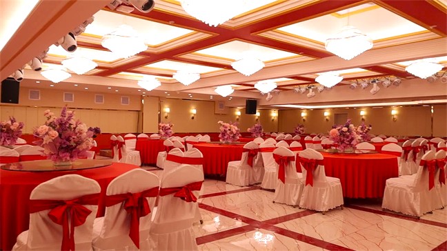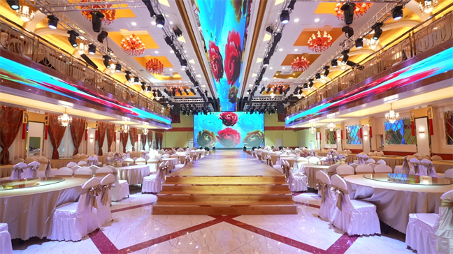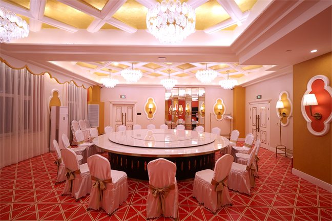 皇宮廳—金碧輝煌、皇宮式裝修,面積1038㎡,層高8.6米,配備愛(ài)情階梯、軌道威亞、二層觀禮臺(tái)、浪漫燈光秀、旋轉(zhuǎn)升降舞臺(tái)、頭頂天幕連接開合大屏。可承接50桌的大型宴會(huì),也可舉辦600人的大型會(huì)議;還可用作會(huì)展、車展場(chǎng)地,每逢節(jié)假日還為市民上演文藝節(jié)目。